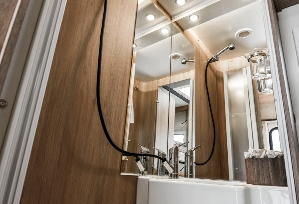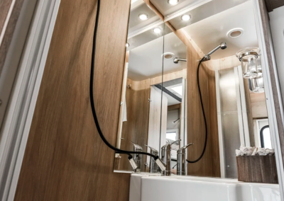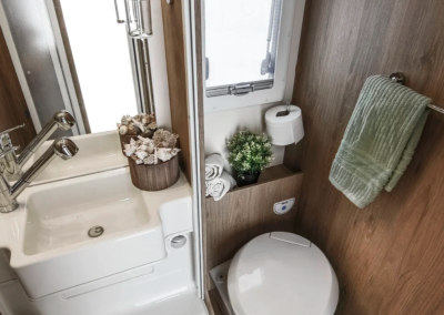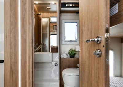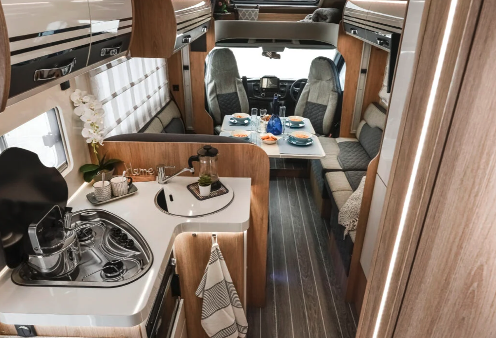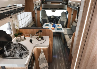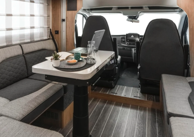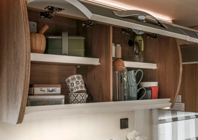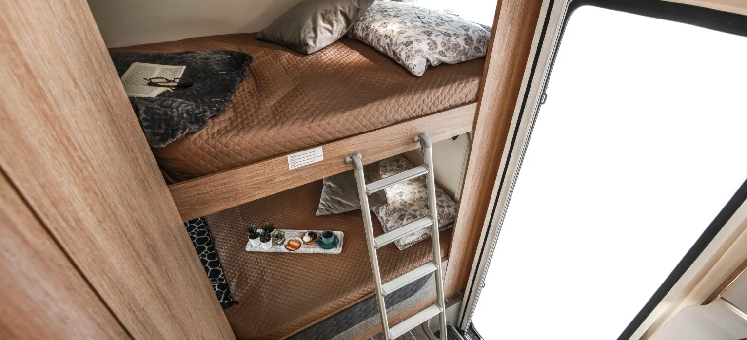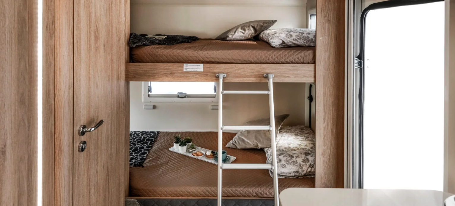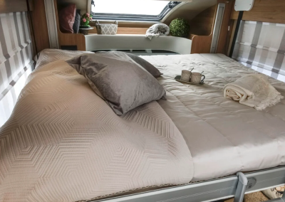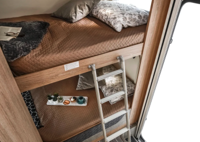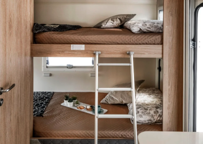 Beds – 1 double (1 Elevating Bed), rear bunks & Lounge convert.