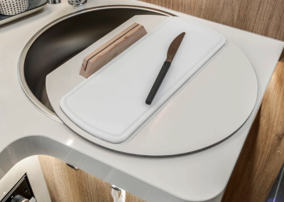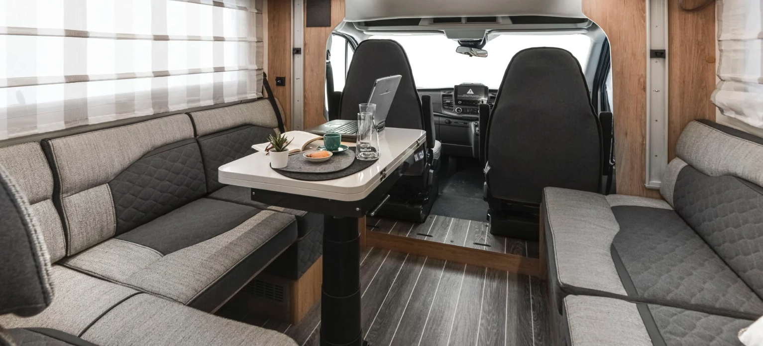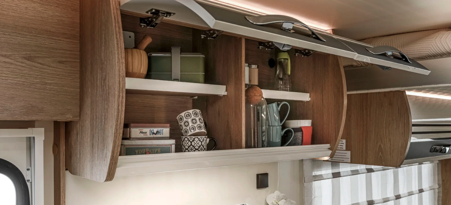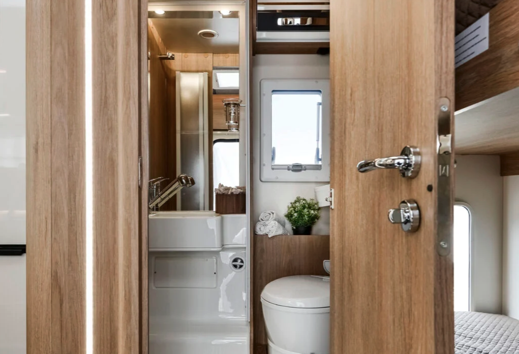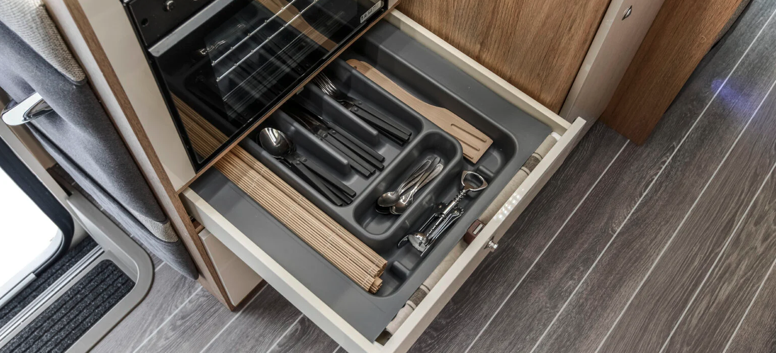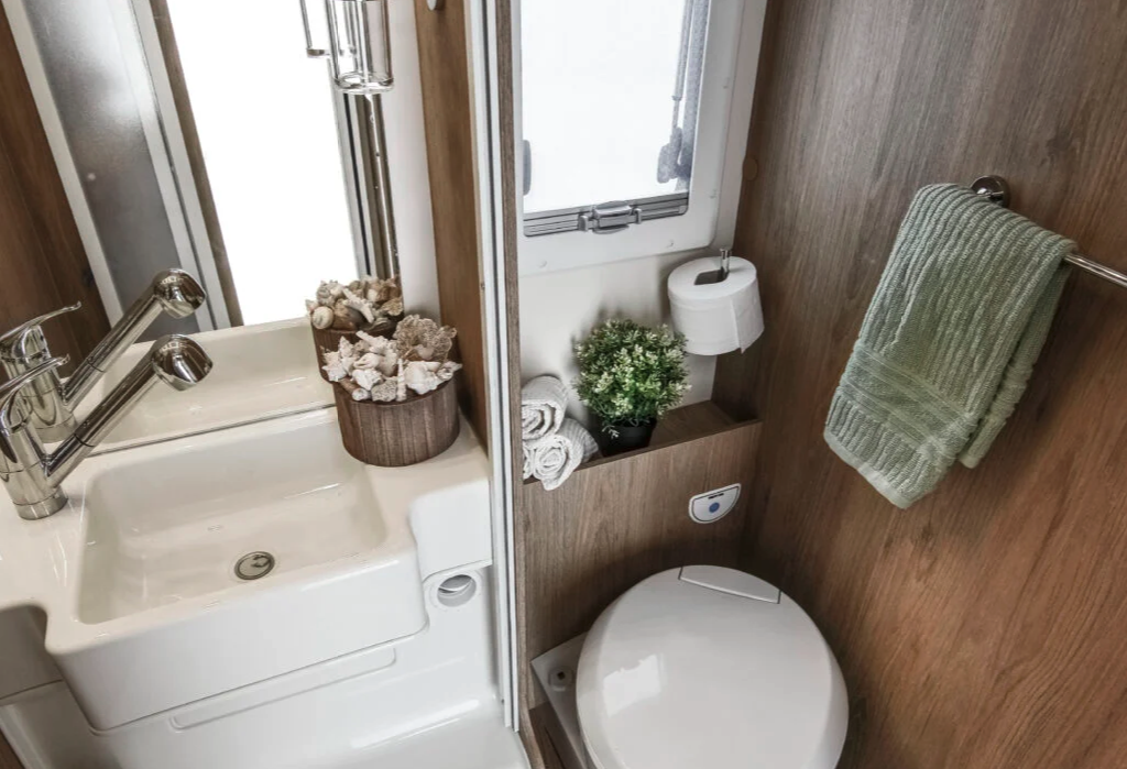 Beds – 1 double (1 Elevating Bed), rear bunks & Lounge convert.