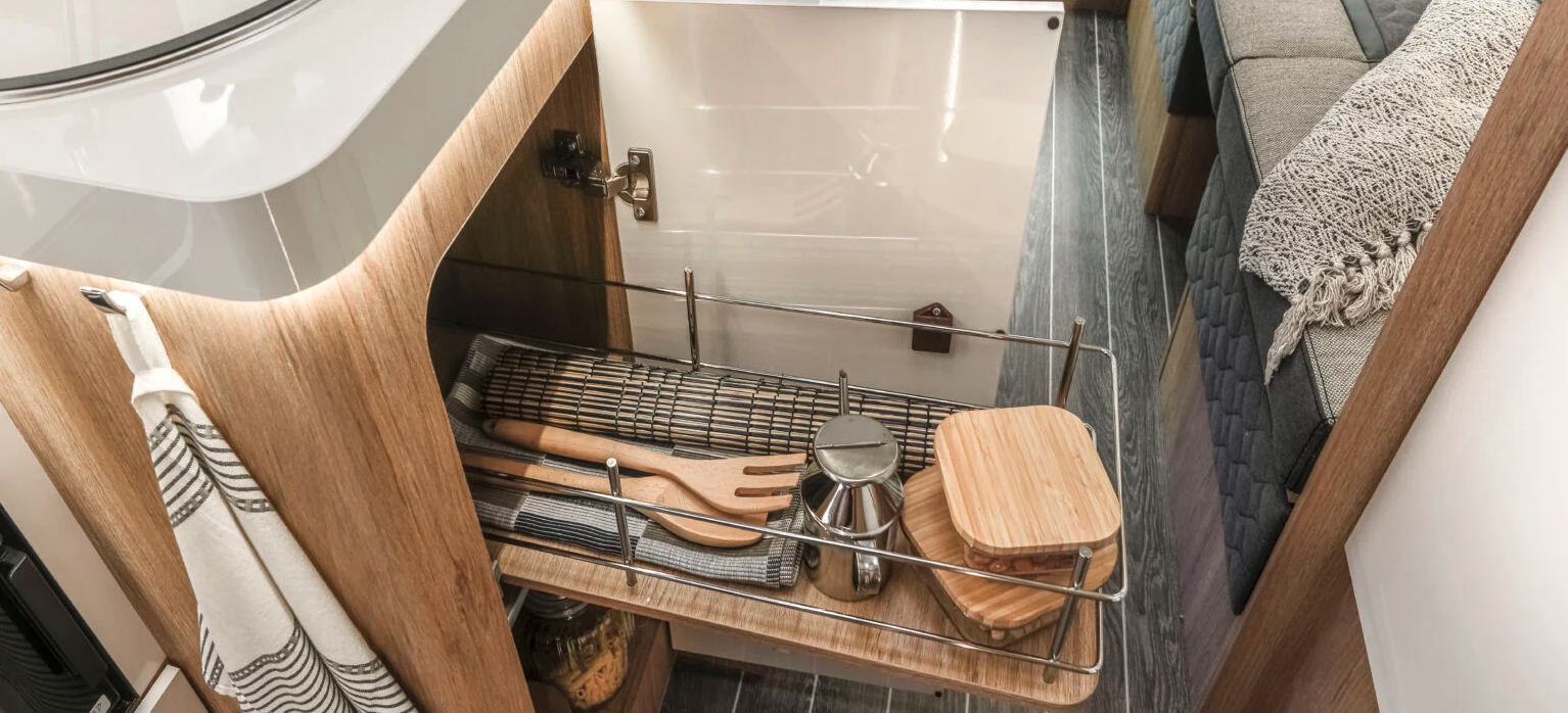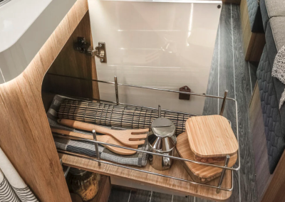 Gas cooker, hob, kitchen sink, fridge (140litres), outside gas BBQ connection, WIFI, bathroom cubicle with toilet, wash basin and shower.